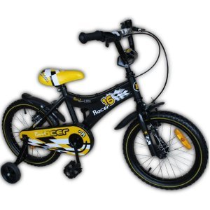 V-Bremsen vorne und hinten, Freilauf (keine Rücktrittbremse) 16 Zoll Kinderfahrrad Racer Black - Gewicht: 9kg - empfohlene Körpergröße: 100 - 115cm Das Fahrrad ist zu 90% vormontiert! Neu und Originalverpackt inklusive PVC Schutzbleche, Klingel, Kettenschutz und Stützräder niedrigste Sattelhöhe ca. 50cm (gemessen vom Boden bis Satteloberkante)