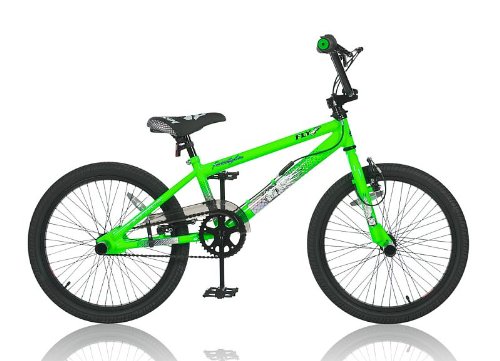 Rahmenhöhe: ca.28cm (+18cm einstellbar) Bremsgriffe - rutschfeste HandgriffeV-Bremsen vorne & hinten - 4 Pegs in Schwarz Gewicht: 16 kg - Farbe: GRÜN-SCHWARZ BMX Sportsattel mit extra langer Sitzstange-Kettenschutzblech 20 Zoll BMX Grün - Freestyle-Gabel 360° drehbar- Freestyle-Felgen -Alu Räder