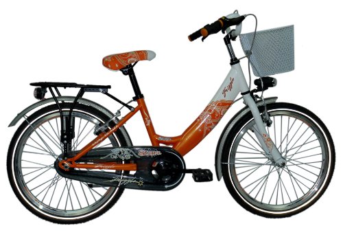 20 Zoll Cityfahrrad - Gewicht: ca.14 kg - Farbe: Orange - inkl.Metallkorb Rahmenhöhe ca. 30 cm -Batterie betriebene Halogen Lampe (vorne und hinten) Vorder Lampe in 3 Stufen verstellbar-Straßenbereifung -Bestimmt nach STVO V-Brake Felgenbremse hinten Alu Felgen -Gepäckträger- Praktischer Seitenständer-Stabile Bremsgriffe mit Metallbremshebel Robuster, Lackierter Stahlrahmen in exzellentem Design - Metallic-Lackierung -Bequeme Griffgummi - Rücktrittbremse