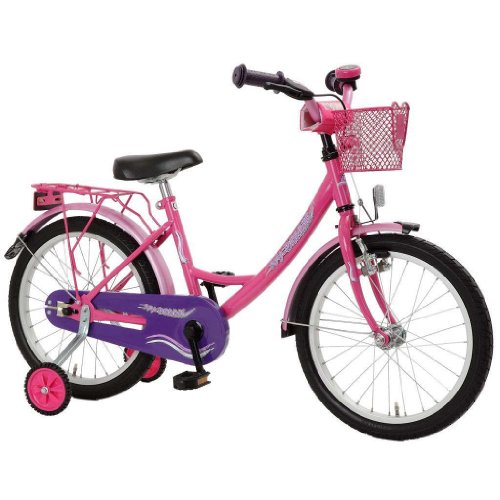 16 Zoll - kindgerechter Wave-Rahmen - stabile Stützräder - Vorbaupolst er - Reflektor vorne und hinten - Gepäckträger - Drahtkorb - Farbe: pi nk