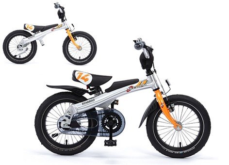 RennRad 14 Zoll silber/orange Modell 2013 Lernlaufrad und Kinderrad in Einem Schwalbe Big Apple reflex, hochwertige Reflektoren gemäß STVZO Verkauf durch bikeshop2000.de vormontierte Treteinheit mit Rücktrittbremse