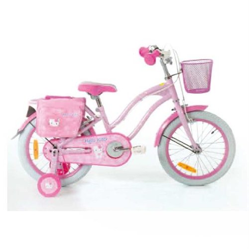 Hello Kitty Kinder Fahrrad (16 Zoll) mit liebevollen Details (Puppensitz, Kettenschutz & Stützräder, ) hochwertiges Bremssystem Feature