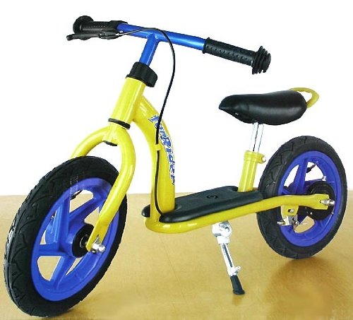Kinder-Sicherheitsgriffe, 12" Kunststofflaufräder mit Luftbereifung höhenverstellbarer Lenker, Hinterrad mit Bandbremse Sattelhöhe: 36 - 41 cm, Lenkerhöhe: 53 - 56 cm Maße: Länge ca. 90 cm, Lenkerbreite ca. 43 cm Seitenständer